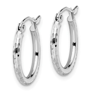 2mm Diamond Cut Round Hoop Earrings in 10k White Gold, 17mm (5/8 Inch) - Black Bow Jewelry Company