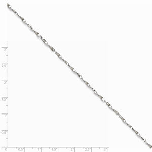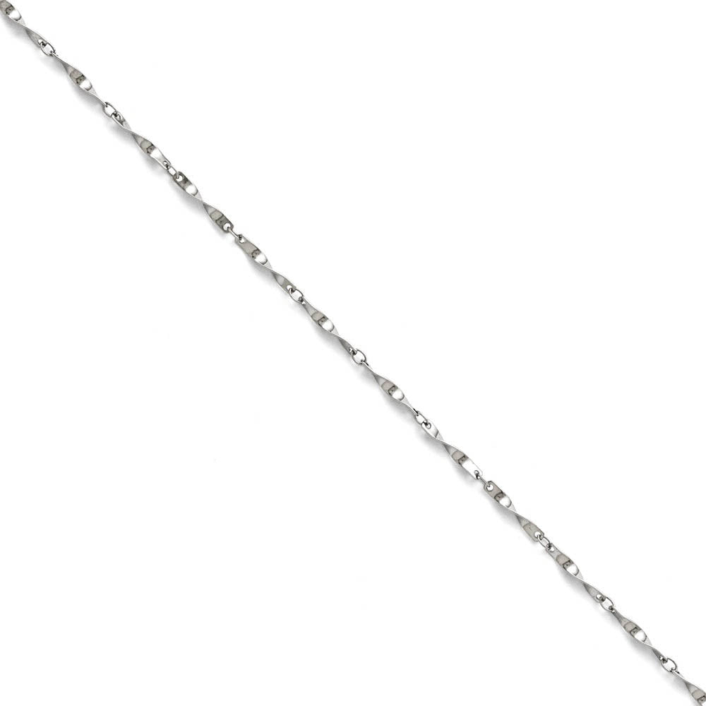 • Crafted from 316L stainless steel for its durability and beauty, this women's distinctive twisted bar chain bracelet features an innovative design in a polished contemporary metal that will not tarnish. It measures 2mm in width and closes with a fancy lobster clasp.