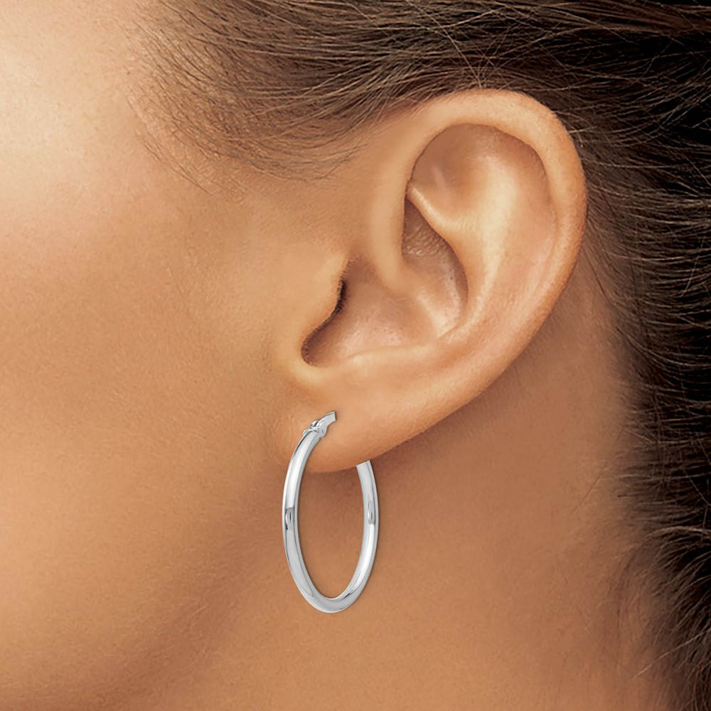 2mm Polished Sterling Silver Round Hoop Earrings, 25mm (1 in) - Black Bow Jewelry Company