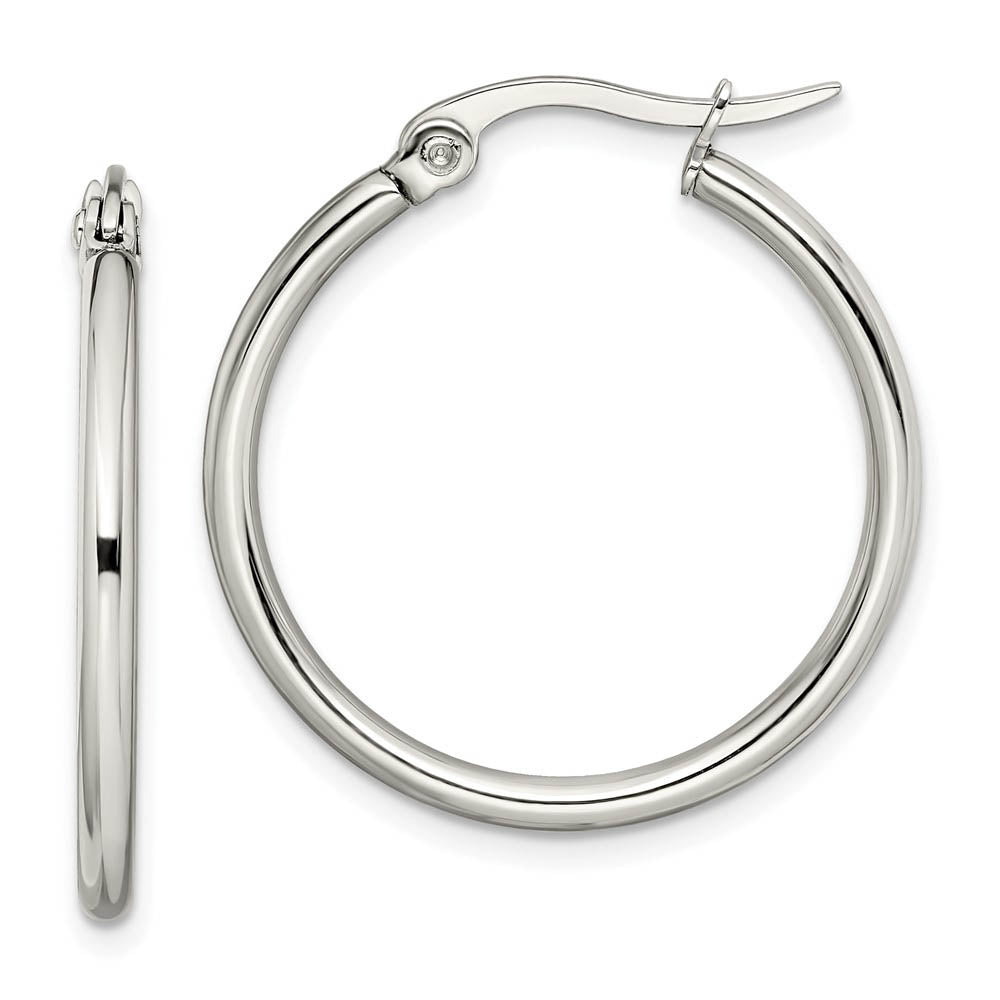 2mm Stainless Steel Classic Round Hoop Earrings - 27mm (1 1/16 Inch)