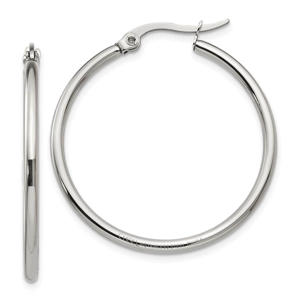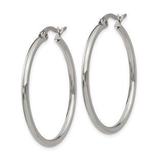 2mm Stainless Steel Classic Round Hoop Earrings - 32.5mm (1 1/4 Inch)