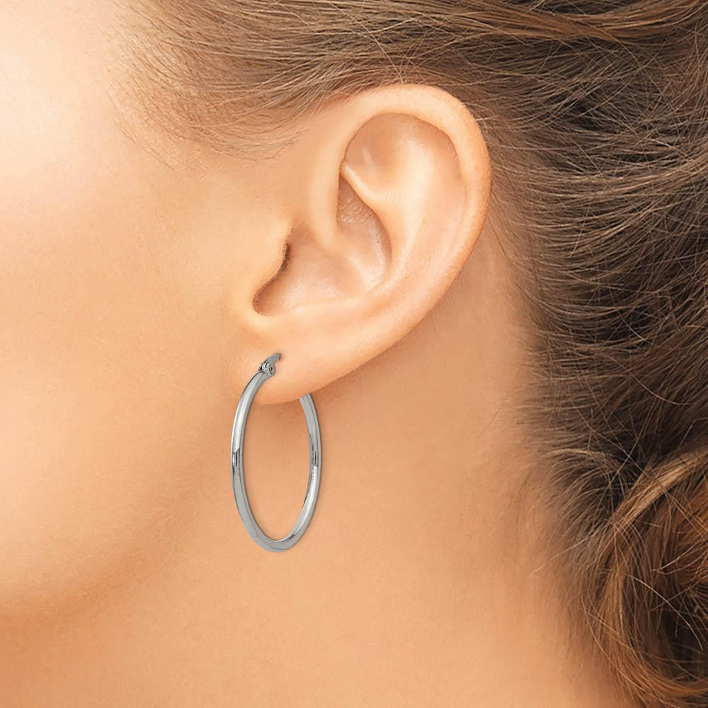 2mm Stainless Steel Classic Round Hoop Earrings - 32.5mm (1 1/4 Inch) - Black Bow Jewelry Company