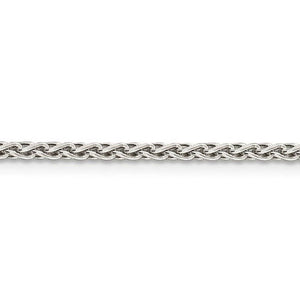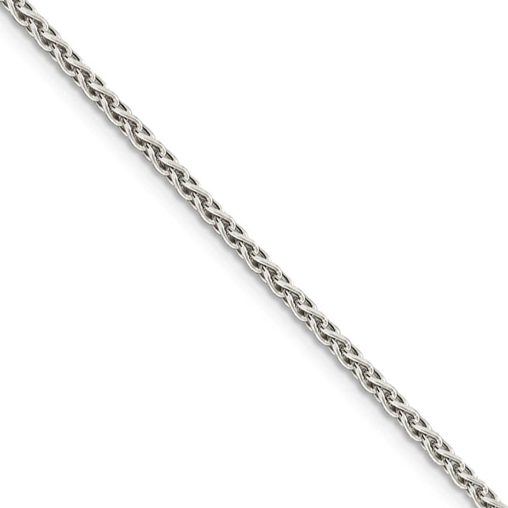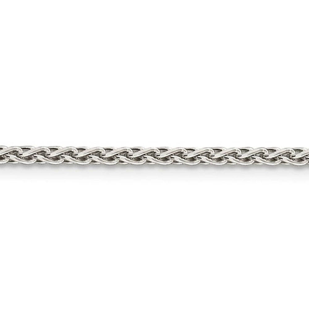 Sterling silver links are plaited together to create a fantastic spiga design for this 2mm width, 22-inch long chain necklace that closes with a lobster claw clasp. It features a solid link construction with a sparkly diamond-cut finish. Made in Italy.