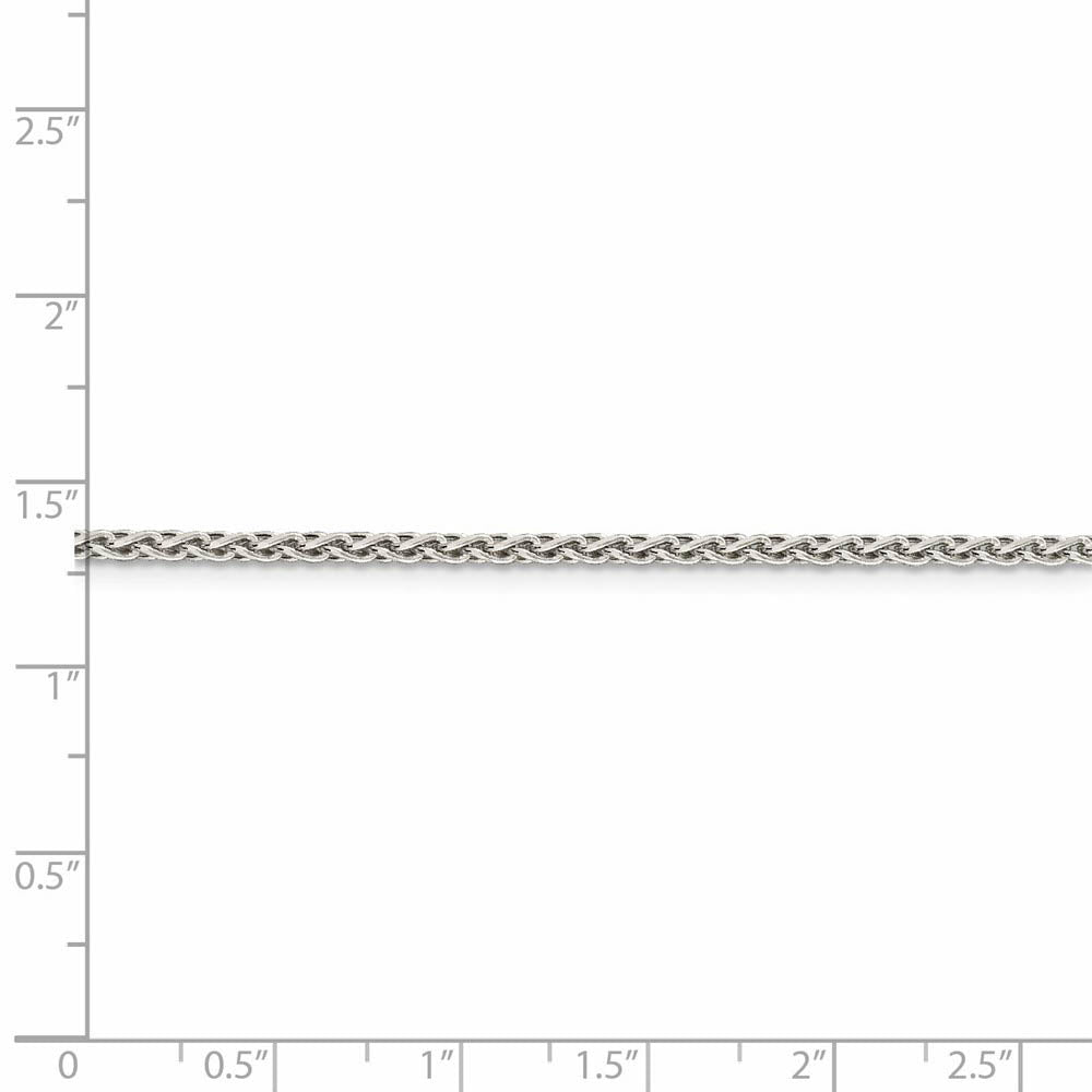 Sterling silver links are plaited together to create a fantastic spiga design for this 2mm width, 18-inch long chain necklace that closes with a lobster claw clasp. It features a solid link construction with a sparkly diamond-cut finish. Made in Italy.