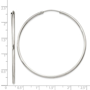 2mm, Sterling Silver, Endless Hoop Earrings - 55mm (2 1/8 Inch) - Black Bow Jewelry Company