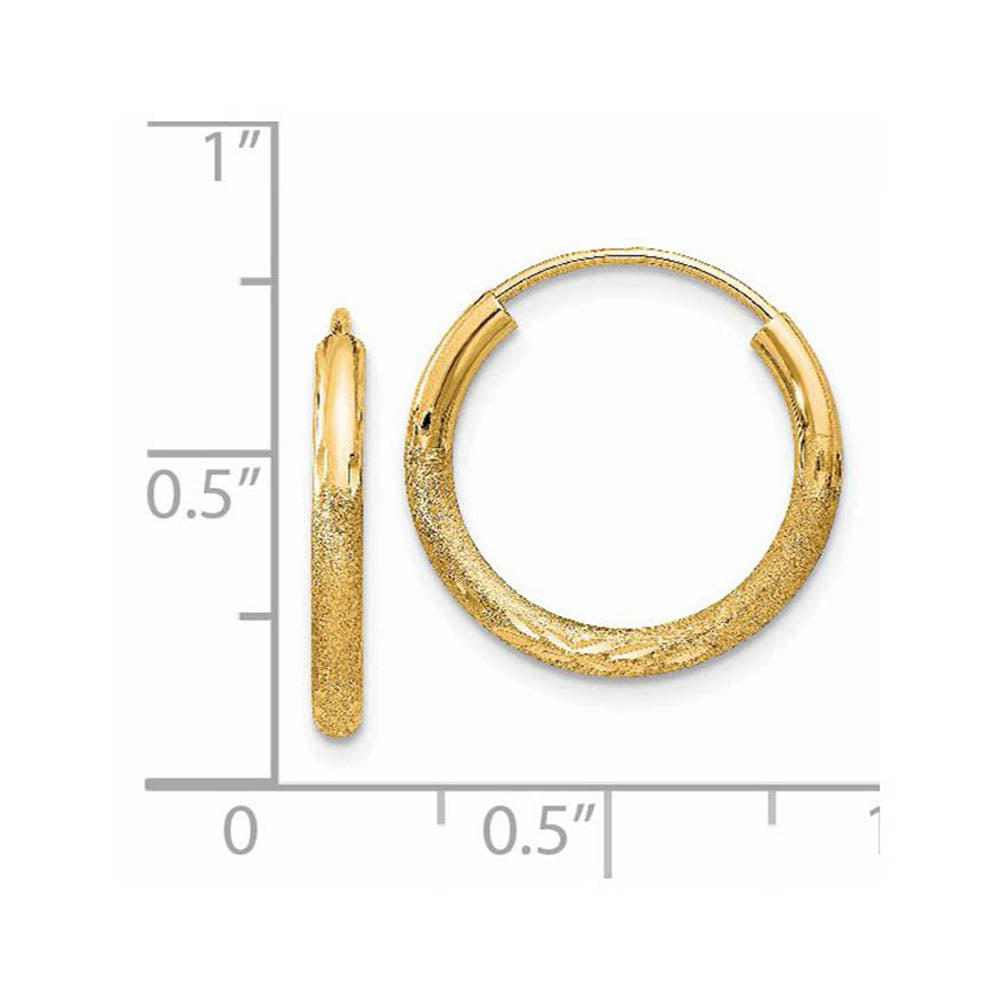 2mm x 13mm 14k Yellow Gold Satin Diamond-Cut Endless Hoop Earrings - Black Bow Jewelry Company