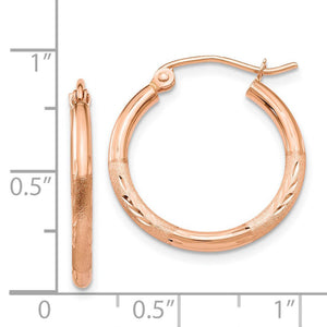 2mm x 20mm 14k Rose Gold Satin & Diamond-Cut Round Hoop Earrings - Black Bow Jewelry Company