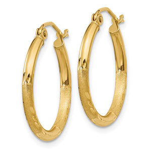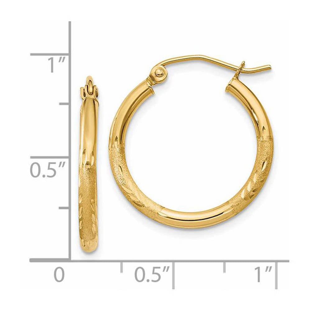2mm x 20mm 14k Yellow Gold Satin & Diamond-Cut Round Hoop Earrings - Black Bow Jewelry Company