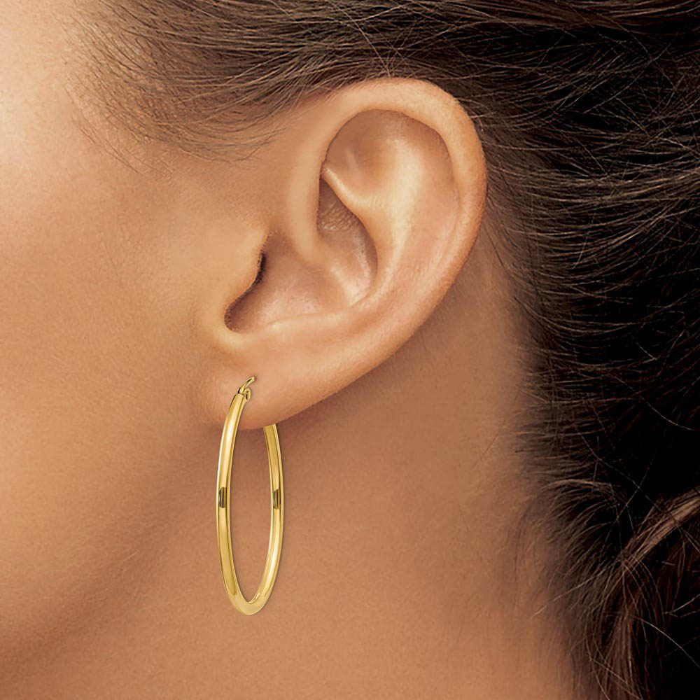 2mm x 37mm Polished 14k Yellow Gold Classic Oval Hoop Earrings