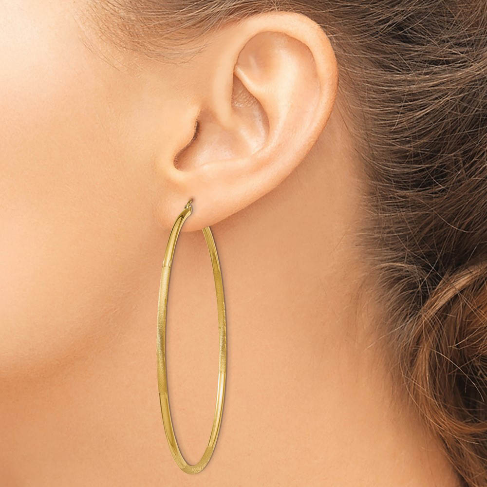 2mm x 65mm 14k Yellow Gold Satin & Diamond-Cut Round Hoop Earrings
