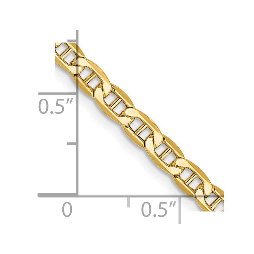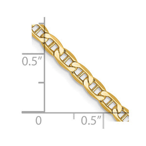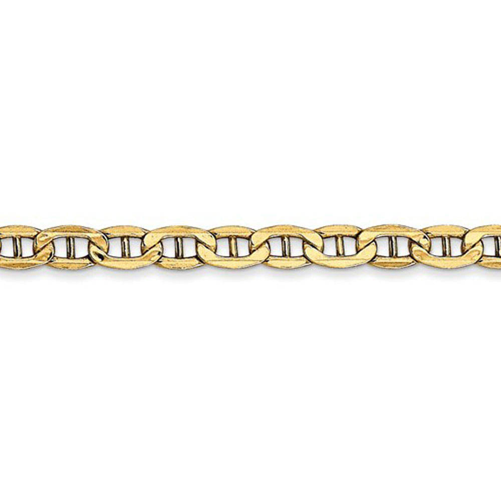 A nautical style design crafted to resemble the cable used to anchor ships, also known as the mariner chain, creates a simple innovative styled necklace. This 3.2mm wide, 18-inch long, hollow link chain created from 14k yellow gold with a lobster-claw clasp is ideal for both men and women.