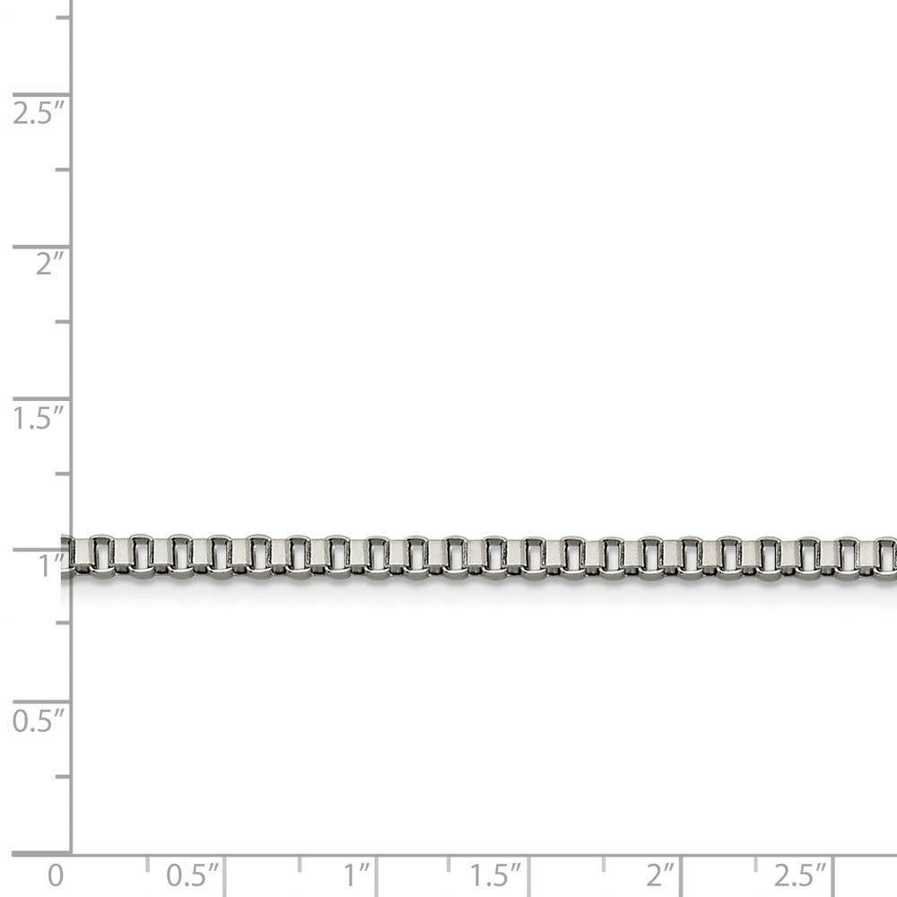 Known for its strength and flexibility, this gleaming box chain features a simple design that is less likely to kink and a polished finish that catches the light with every movement. It measures 3.2mm in width, 24 inches in length and is fashioned from 316L stainless steel, a contemporary metal that will not rust or tarnish.