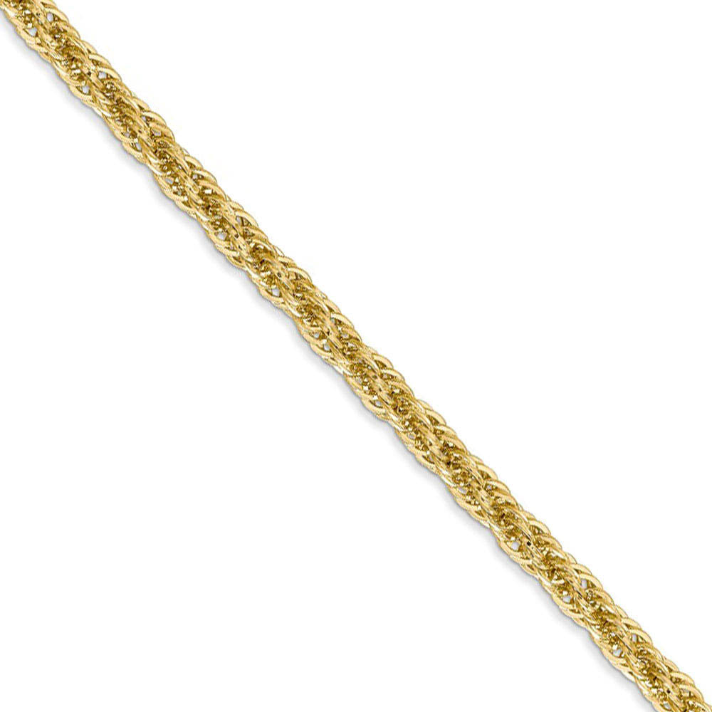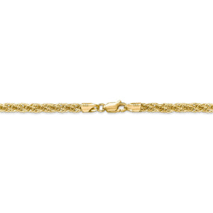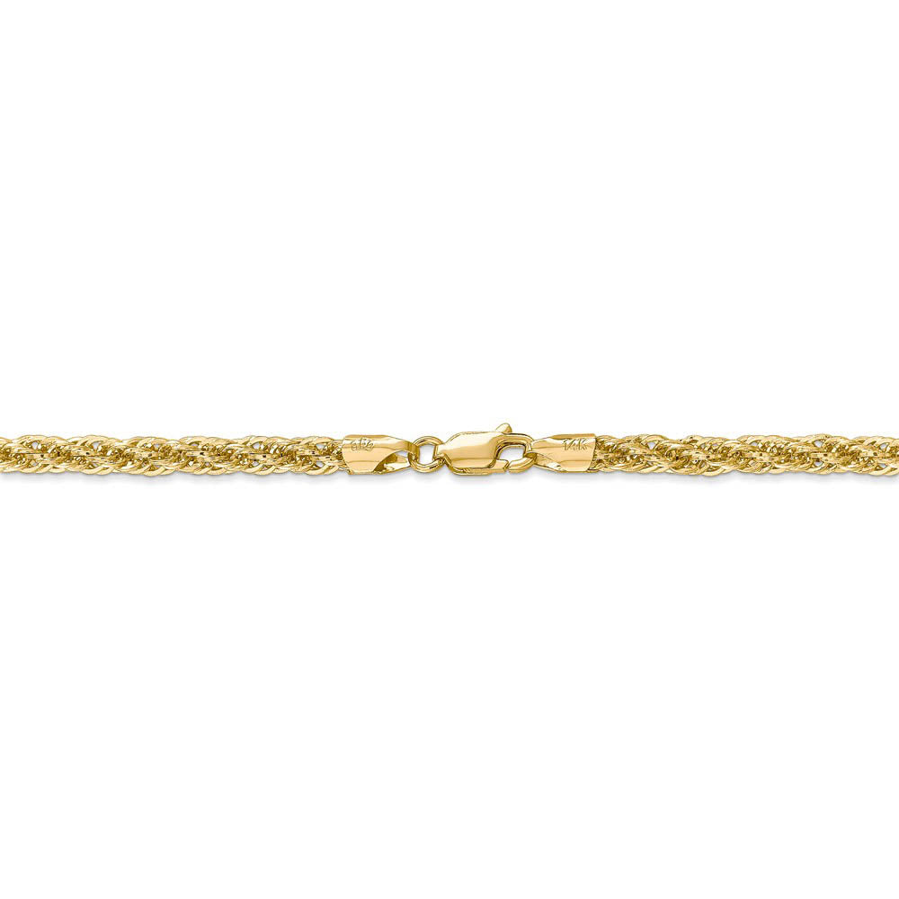 • Spiraling rope chains made of 14k yellow gold enhanced with diamond-cuts are extremely popular because they offer a classic design with maximum shine. This 24-inch hollow link necklace chain is 3.3mm in width and fastens with a lobster claw clasp.