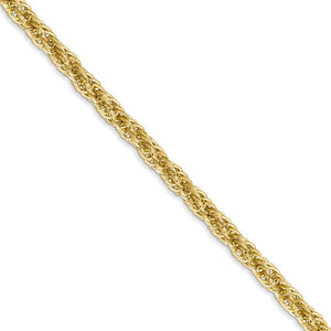 • Spiraling rope chains made of 14k yellow gold enhanced with diamond-cuts are extremely popular because they offer a classic design with maximum shine. This 20-inch hollow link necklace chain is 3.3mm in width and fastens with a lobster claw clasp.