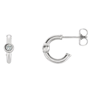 Put a little sparkle in your style with these small J-hoop earrings made from 14k white gold and genuine diamonds. They measure approximately 3.5mm (1/8 inch) in width by 10.5mm (3/8 inch) in length. The two 3mm natural diamonds are G-H in color, I1 in clarity and the total diamond weight for the pair is 1/5 carat. This is a made to order item and is estimated to ship in about 6-8 days. Please email service@theblackbow.com for more details.