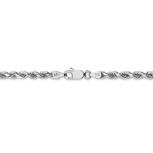 3.5mm 14k White Gold Diamond Cut Solid Rope Chain Necklace