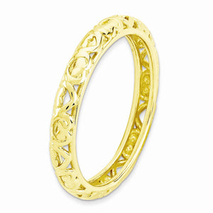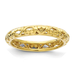 • Make it simple and stylish with stackable bands of different textures, finishes, widths and colors! This yellow gold tone plated sterling silver band features a domed carved heart design with a polished finish that measures 3. Mm wide. Guaranteed to fit together perfectly with all of the mix and match Stackable Expressions rings.