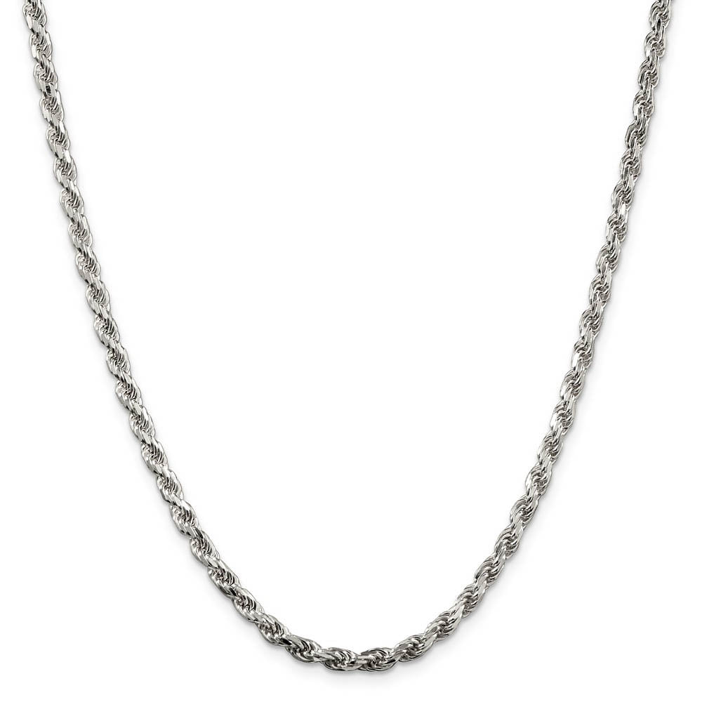 3.5mm Rhodium Plated Sterling Silver Solid D/C Rope Chain Necklace - Black Bow Jewelry Company