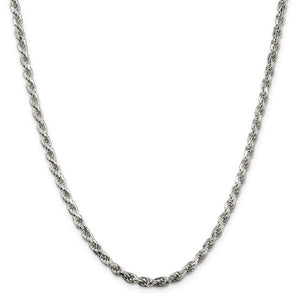3.5mm Rhodium Plated Sterling Silver Solid D/C Rope Chain Necklace