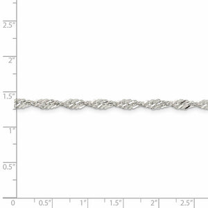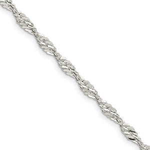 A series of interwoven loops on this elegant Singapore chain catches the light from every angle thanks to the twisted link design. It measures 3.5mm in width by 18-inches in length and is fashioned from polished sterling silver with a classic lobster claw clasp.