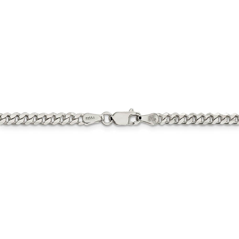 • Ageless and classic, a curb chain is one of the most durable styles. The polished sterling silver solid links on this 28-inch necklace chain are 3.5mm in width and close with a lobster claw clasp.
