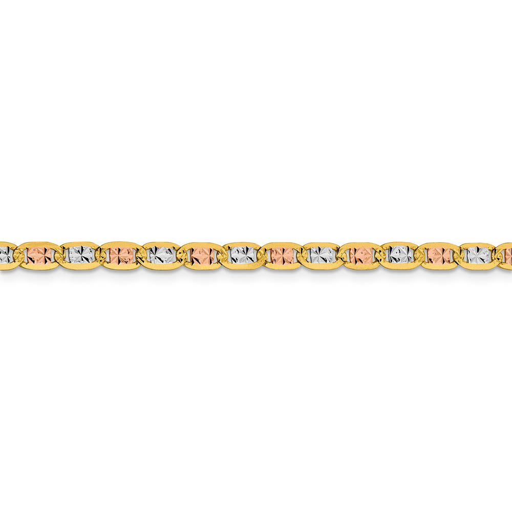 3.75mm 14k Gold Tri-Color Solid Fancy Pave Anchor Chain Bracelet - Black Bow Jewelry Company