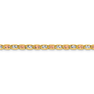 3.75mm 14k Gold Tri-Color Solid Fancy Pave Anchor Chain Bracelet