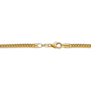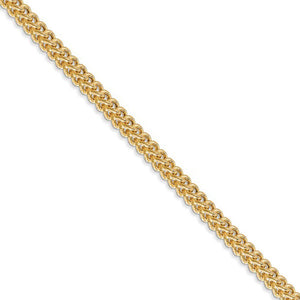 • Featuring a three-dimensional hollow design, this polished Franco chain necklace fashioned from 14k yellow gold looks great alone or a layered with other chains. It is 3mm in width, 20 inches in length and it closes with a classic lobster clasp.