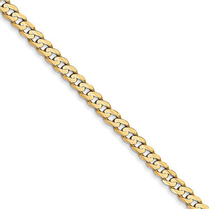 • The open curb links on this classy 3mm solid chain are accentuated with a beveled edge, concave design and hand-polished to create a mirror-like finish. Created from 14k yellow gold and includes a secure, lobster-claw clasp. 18 inches in length.