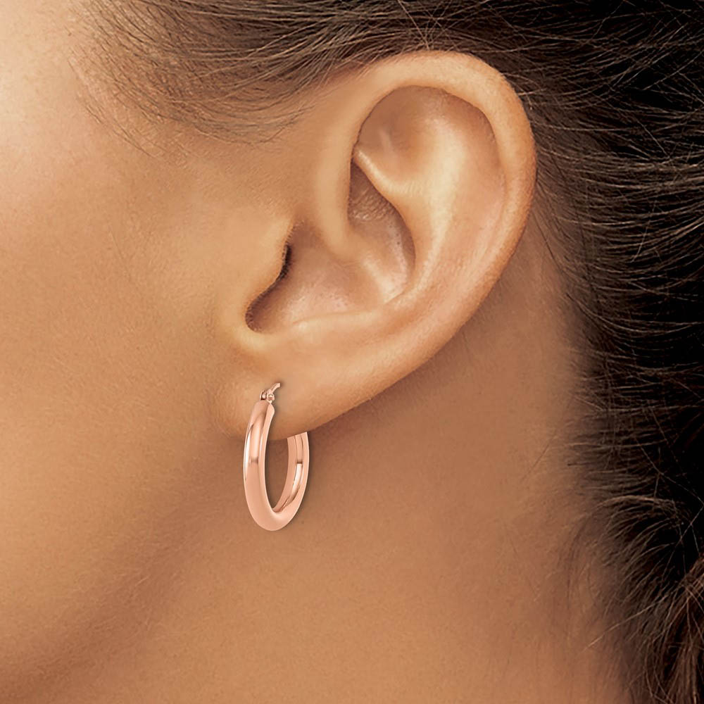 3mm Round Hoop Earrings in 14k Rose Gold, 20mm (3/4 Inch)
