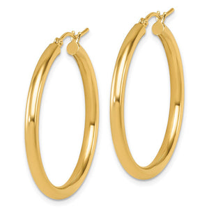 3mm Round Hoop Earrings in 14k Yellow Gold, 35mm (1 3/8 Inch)