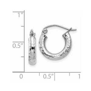 3mm x 14mm, 14k White Gold, Diamond-cut Round Hoop Earrings