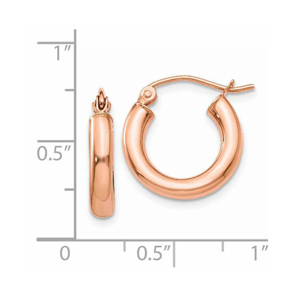 3mm x 16mm 14k Rose Gold Round Tube Hoop Earrings