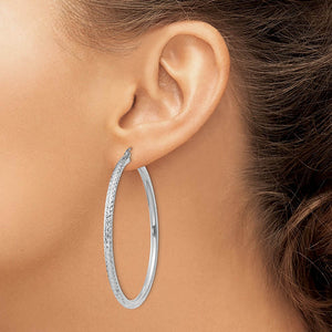 3mm x 55mm, 14k White Gold, Diamond-cut Round Hoop Earrings - Black Bow Jewelry Company