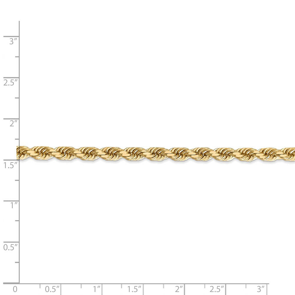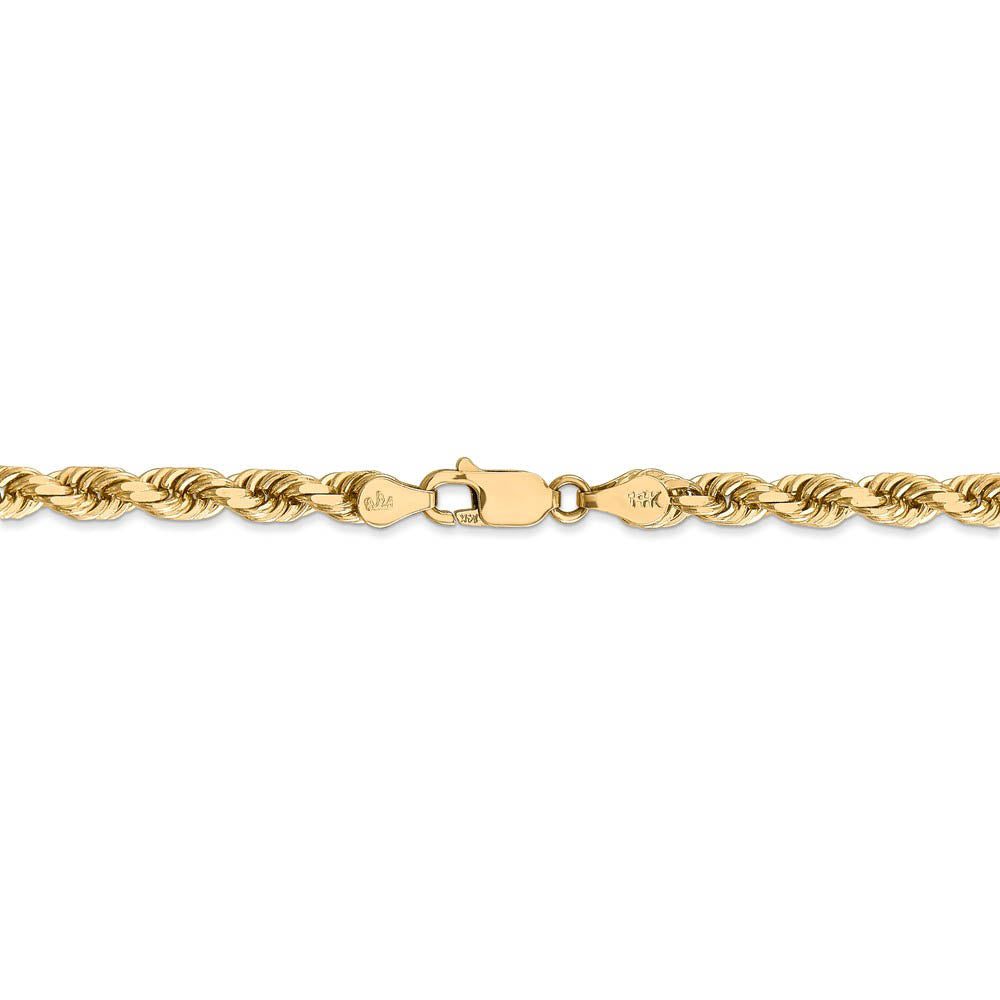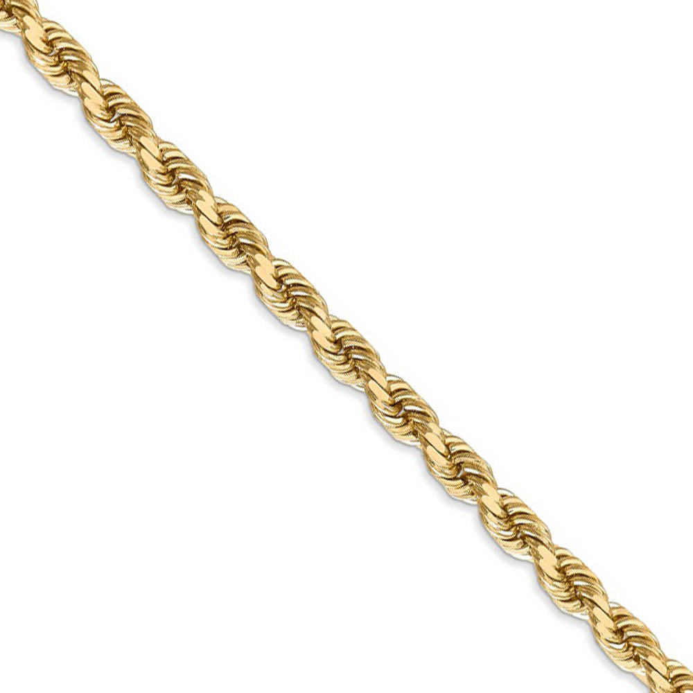 Twisting strands of 14k yellow gold form an intricate spiral pattern on this fabulous rope chain accented with a diamond-cut finish and finished with a lobster claw clasp. Designed to provide the perfect combination of beauty, strength and integrity, this solid link necklace chain is 4.5mm in width by 30-inches in length.