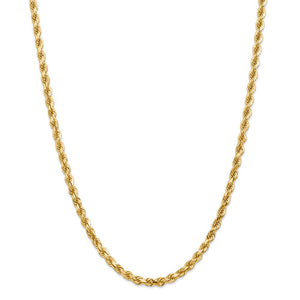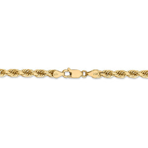 Twisting strands of 14k yellow gold form an intricate spiral pattern on this fabulous rope chain accented with a diamond-cut finish and finished with a lobster claw clasp. Designed to provide the perfect combination of beauty, strength and integrity, this solid link necklace chain is 4.5mm in width by 26-inches in length.