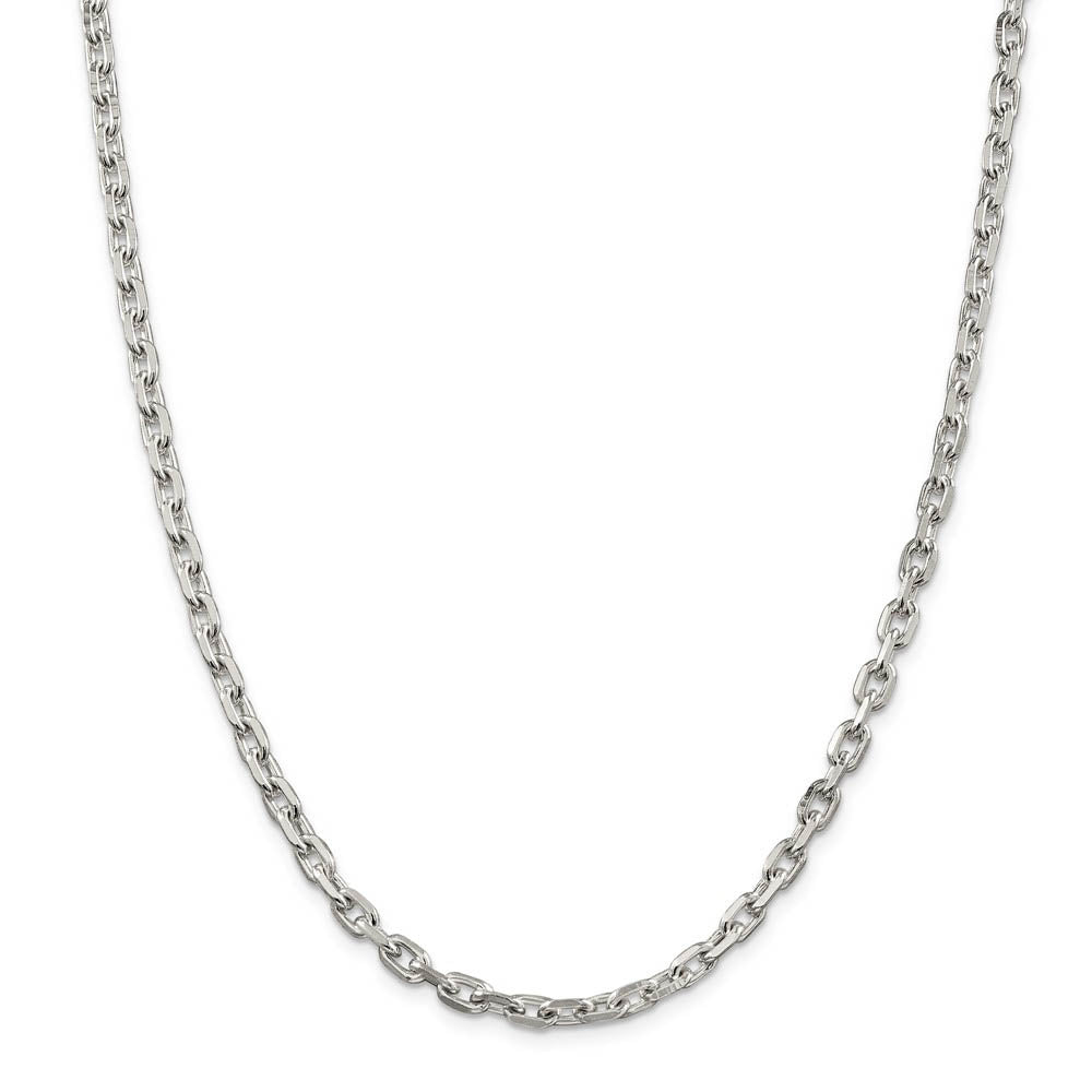 Cable chains are the most common type of jewelry chain that is made using an individual oval or round link interlocked in a uniform pattern, with each link lying at ninety degrees to the next. It is identical throughout, giving it a simple but classic look. This polished sterling silver necklace features solid open oval links that are beveled on the edge and approximately 4.9mm in width by 24-inches in length. It closes with a lobster claw clasp.