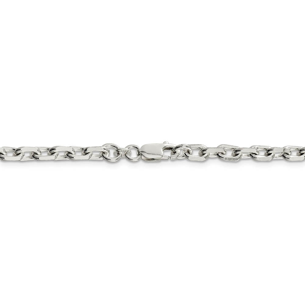 Cable chains are the most common type of jewelry chain that is made using an individual oval or round link interlocked in a uniform pattern, with each link lying at ninety degrees to the next. It is identical throughout, giving it a simple but classic look. This polished sterling silver necklace features solid open oval links that are beveled on the edge and approximately 4.9mm in width by 18-inches in length. It closes with a lobster claw clasp.