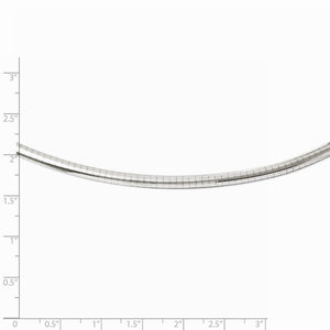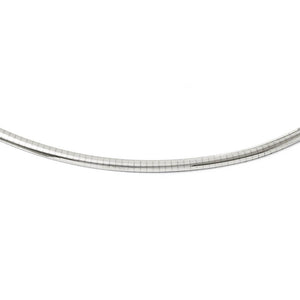 • Give your neckline the adornment it deserves with this gleaming 14k white gold omega chain featuring a flat domed shape. It fastens with a box clasp and measures 4mm in width by 18 inches in length. Made in Italy.