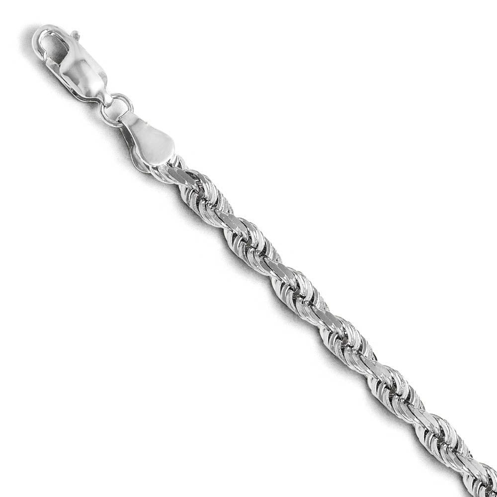 Spiraling rope chains made of 14k white gold enhanced with diamond-cuts are extremely popular because they offer a classic design with maximum shine. Flexible and strong, this 8-inch bracelet chain is 4mm in width and fastens with a lobster claw clasp.