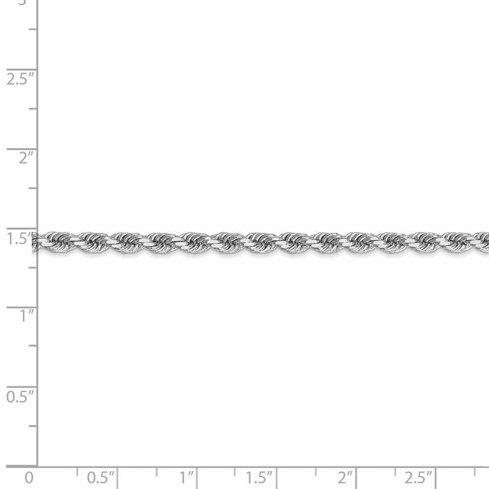 4mm 14k White Gold Solid Diamond Cut Rope Chain Bracelet, 8 Inch
