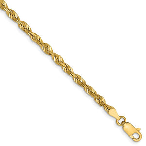 • Spiraling rope chains made of 14k yellow gold enhanced with diamond-cuts are extremely popular because they offer a classic design with maximum shine. Lightweight yet durable, this solid link unisex bracelet chain is 4mm in width by 8-inches in length and fastens with a lobster claw clasp.