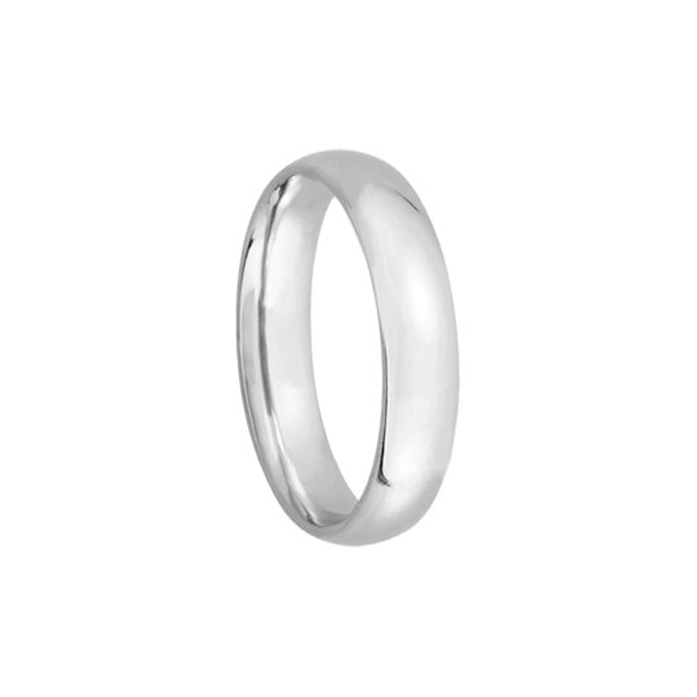 • A traditional band set in 14k white gold featuring a classic dome style with a mirror polished finish and a comfort fit interior or a rounded surface against the finger. This 4mm width band has a thickness of 1.5mm, which is approximately 30% thinner than our standard dome style comfort fit bands.