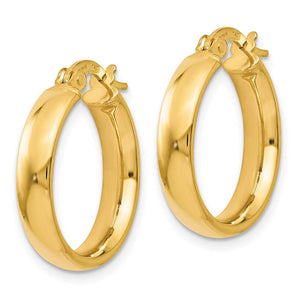 4mm x 19mm (3/4 Inch) Polished 14k Yellow Gold Domed Round Tube Hoops