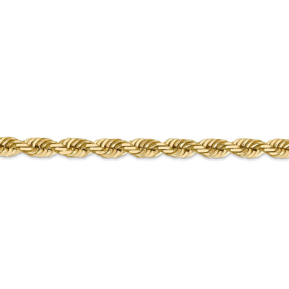 Twisting strands of 14k yellow gold form an intricate spiral pattern on this fabulous rope chain accented with a diamond-cut finish and finished with a lobster claw clasp. Designed to provide the perfect combination of beauty, strength and integrity, this solid link bracelet chain is 5.5mm in width by 7-inches in length.
