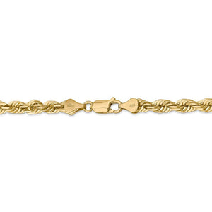Twisting strands of 14k yellow gold form an intricate spiral pattern on this fabulous rope chain accented with a diamond-cut finish and finished with a lobster claw clasp. Designed to provide the perfect combination of beauty, strength and integrity, this solid link bracelet chain is 5.5mm in width by 9-inches in length.