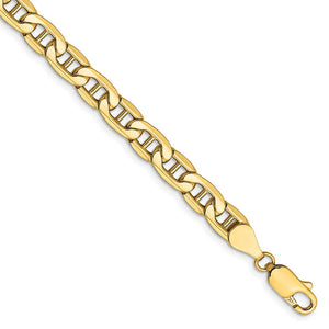 5.5mm, 14k Yellow Gold, Hollow Anchor Link Chain Bracelet