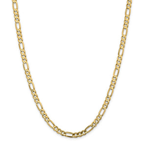 • Our 14k yellow gold, open figaro chain closes with a lobster-claw clasp and features a modern concave design that has been hand-polished to ensure a smooth finish. Measuring 5.5mm in width, the solid link construction of this beautiful chain offers versatility along with durability. 26 inches in length.