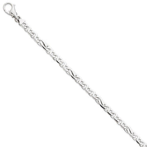 Classic appeal with a modern design, this fancy Figaro style chain bracelet created from rhodium-plated 14k white gold is approximately 5.75mm in width by 7-inches in length, closes with a fancy lobster clasp and features polished solid links.