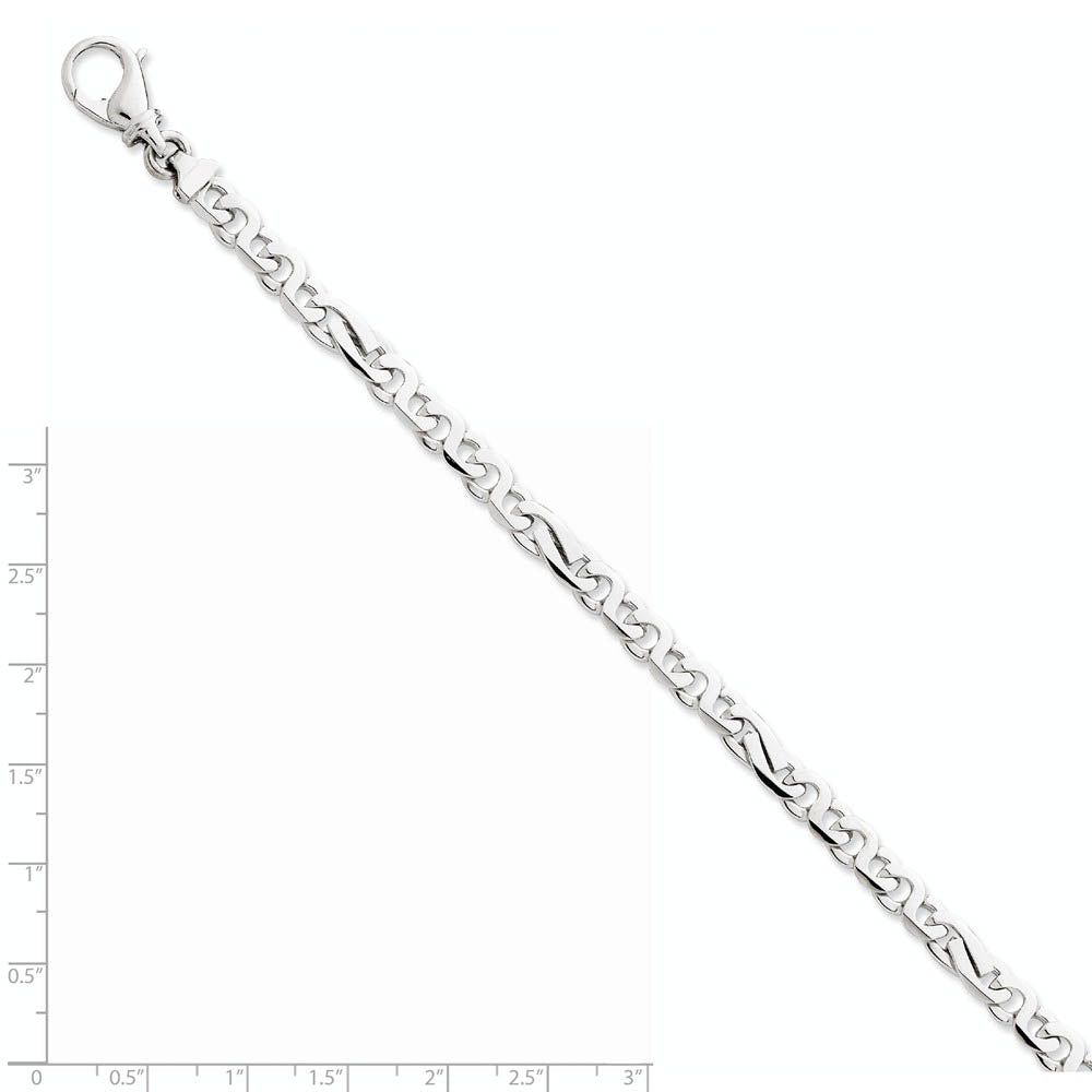 Classic appeal with a modern design, this fancy Figaro style chain bracelet created from rhodium-plated 14k white gold is approximately 5.75mm in width by 9-inches in length, closes with a fancy lobster clasp and features polished solid links. This item is backordered and we estimate it to ship in approx. 10-12 days. Please email service@theblackbow.com for more details.